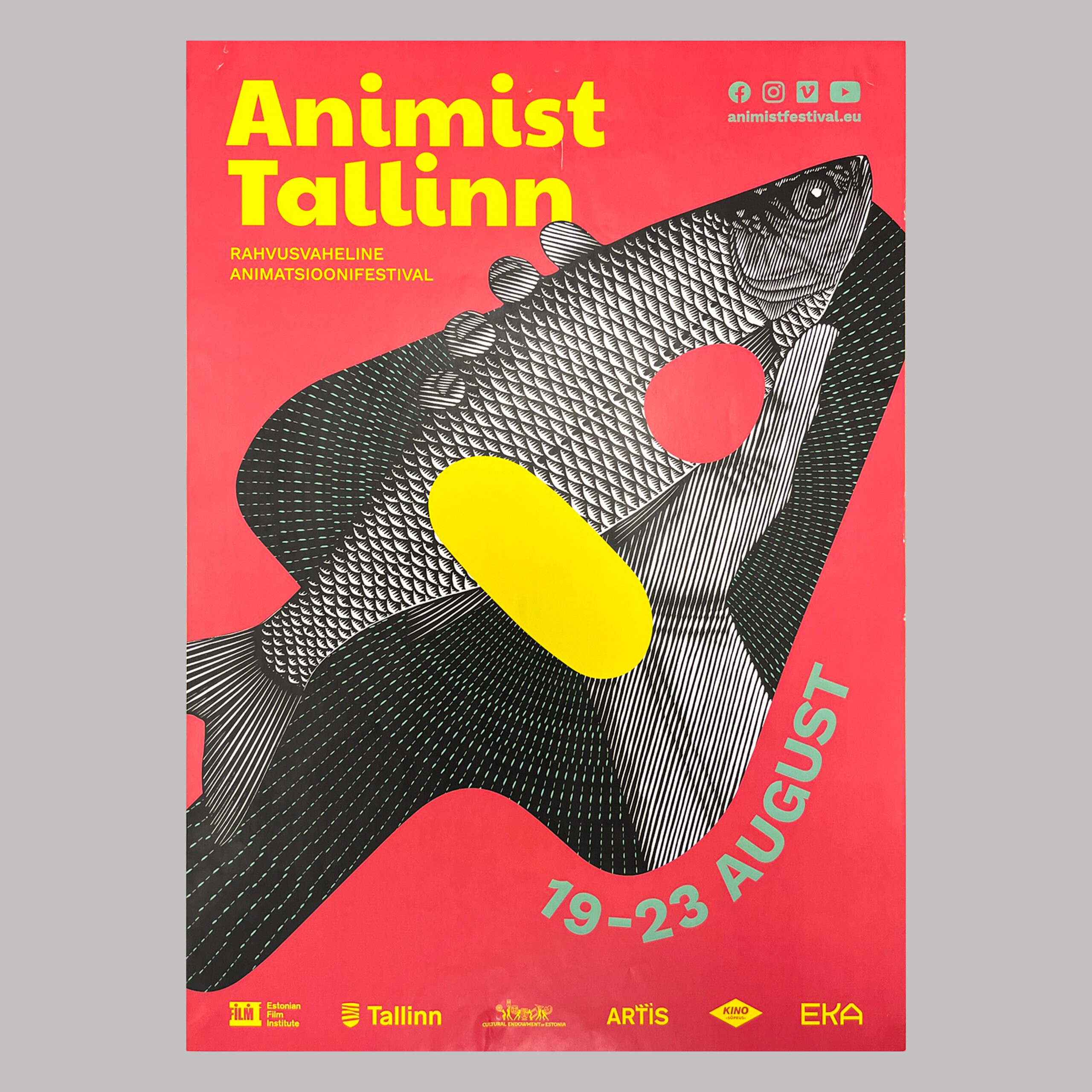 This poster was produced for Animist Tallinn, the international animation festival held in Tallinn from 19 to 23 August 2025. Founded in 2021, Animist Tallinn is a young annual festival dedicated to contemporary animation, with a focus on short films and on promoting animation as an art form in Estonia and internationally.