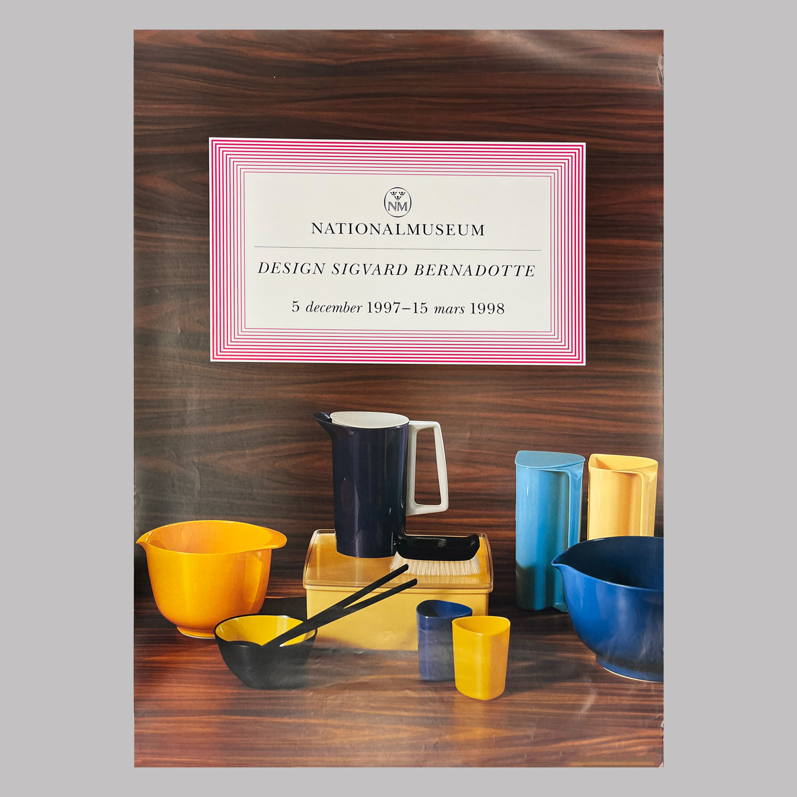 This poster was produced for the 1997–1998 Nationalmuseum exhibition on Sigvard Bernadotte, one of Sweden’s most influential 20th-century industrial designers. The exhibition highlighted Bernadotte’s role in shaping modern Scandinavian design through functional, elegant objects made for everyday use, from household ware to industrial products