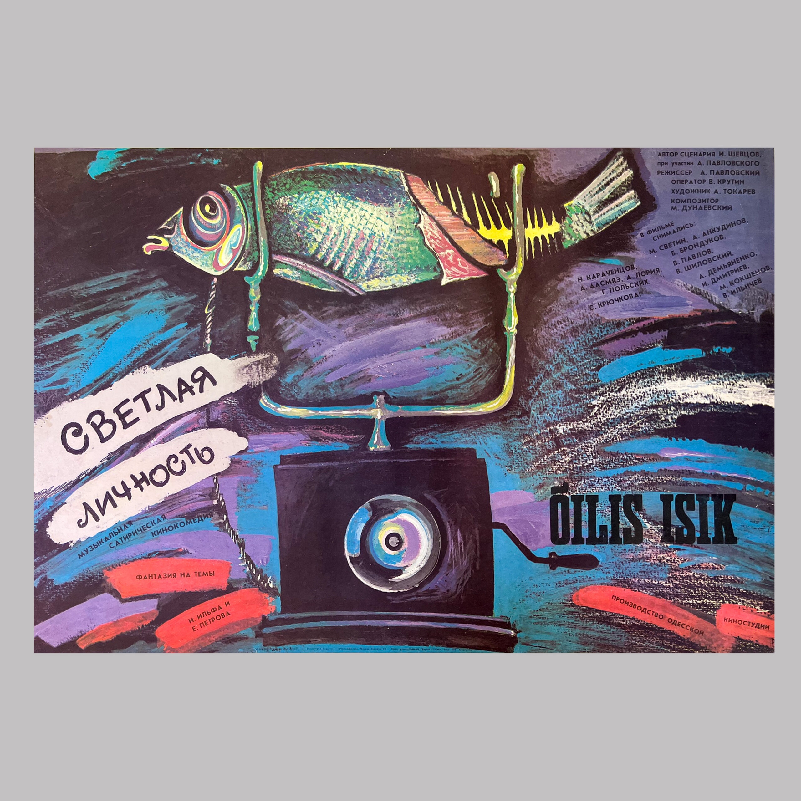 This is an Estonian release poster for the Soviet musical satirical comedy Õilis isik, the local title of Светлая личность. The film was produced at Odessa Film Studio and released in 1989, directed by Aleksandr Pavlovskiy. Based on works by Ilf and Petrov, it belongs to the late Soviet tradition of satirical screen comedies that mocked bureaucracy and everyday absurdities through fantasy and humour.
