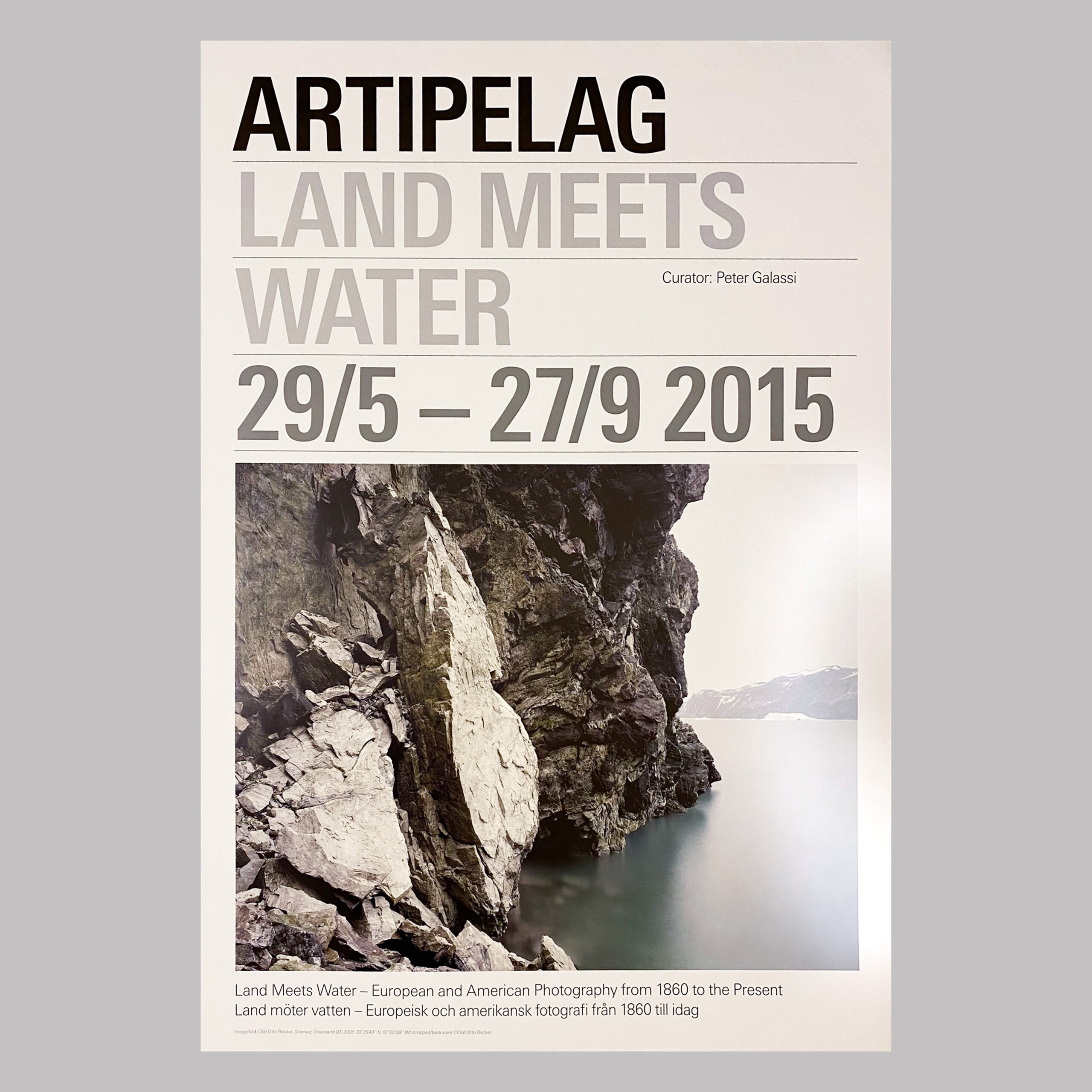 Artipelag: Land Meets Water is an exhibition poster for a major photography show held at Artipelag from 29 May to 27 September 2015. Curated by Peter Galassi, the exhibition explored how photographers have depicted the meeting of land and water from 1860 to the present, bringing together European and American works.
