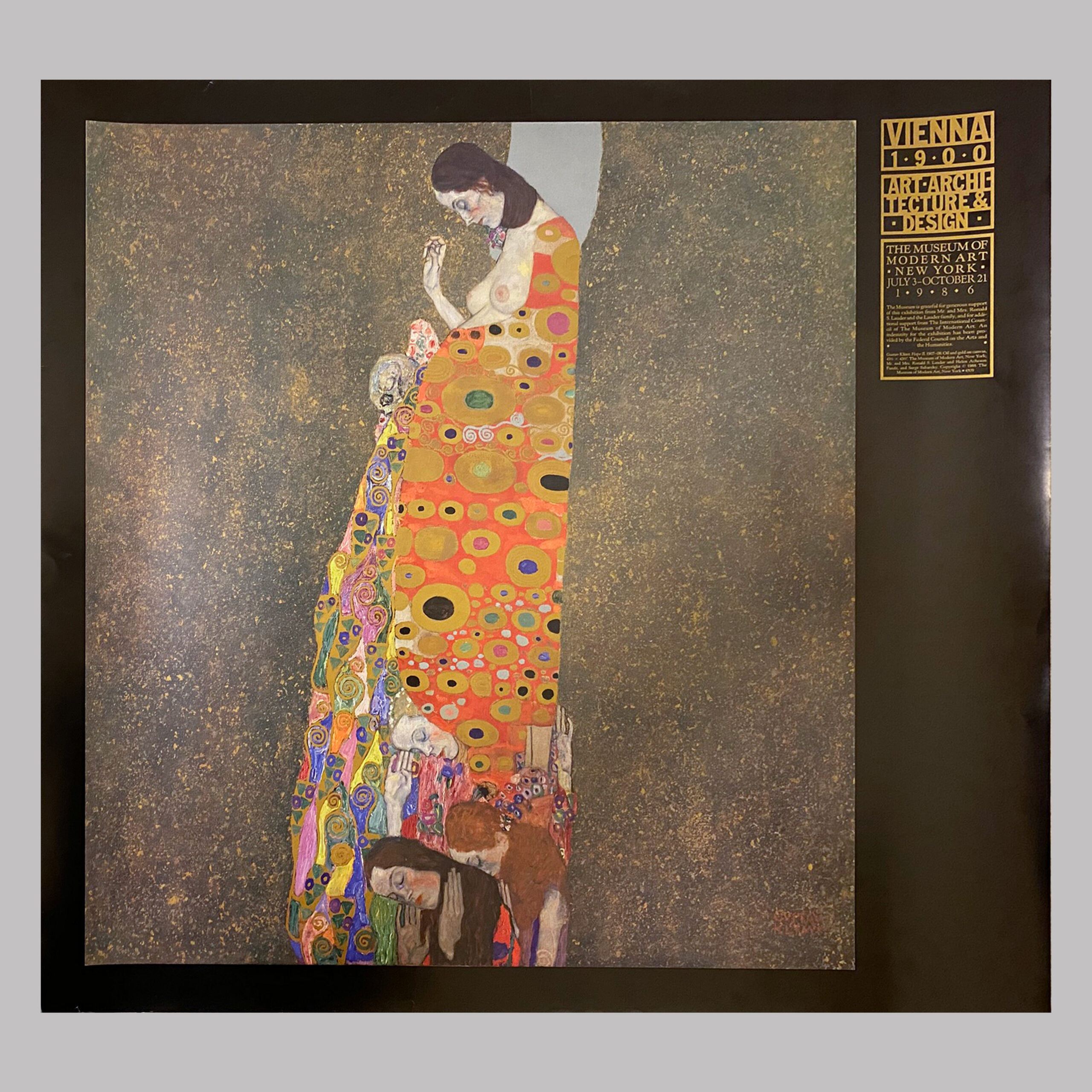This poster promotes the landmark exhibition “Vienna 1900: Art, Architecture & Design”, held at The Museum of Modern Art (MoMA), New York, in 1986. The image reproduces a section of Gustav Klimt’s Beethoven Frieze (1902), a key work of the Vienna Secession that embodied the movement’s break from academic art and its embrace of symbolism, ornament, and psychological depth. The exhibition introduced an international audience to the radical cultural world of fin-de-siècle Vienna—linking figures such as Klimt, Josef Hoffmann, Otto Wagner, and the Wiener Werkstätte—and positioned Vienna 1900 as a foundation for modernism in art, architecture, and design.